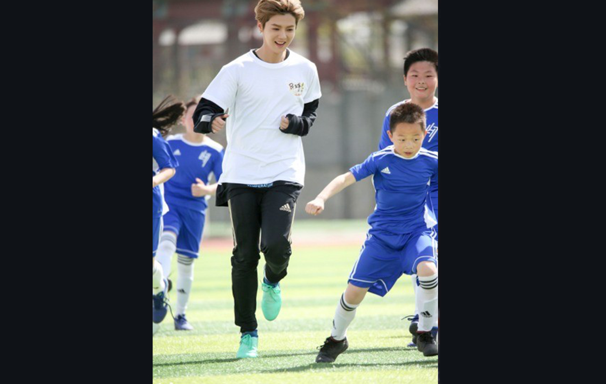 2018年4月,鹿晗和工作室发起“足球第一课”公益项目。鹿晗是英超曼联队球迷,除去看球,他把参与业余足球比赛当做生活中的乐趣,经常联系球友踢球。(受访者供图/图)